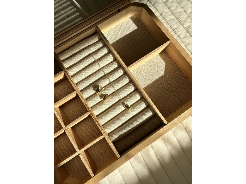 Be mindful of abrasive surfaces to prevent scratching, do not drop your jewelry as it is hollow.